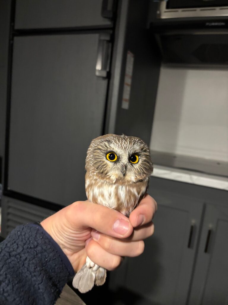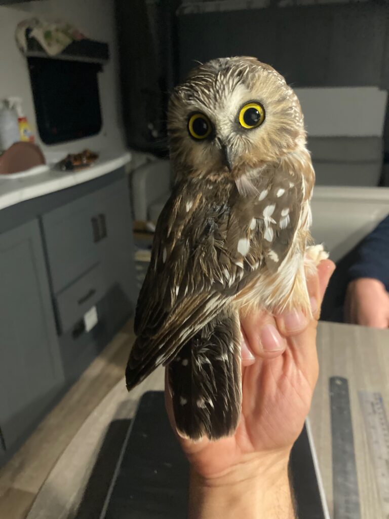 Expect even more owls as migration ramps up. We have occasionally heard another owl species, the barred owl (BDOW), nearby so we’re hoping for a very special guest to potentially visit our nets in the coming weeks!