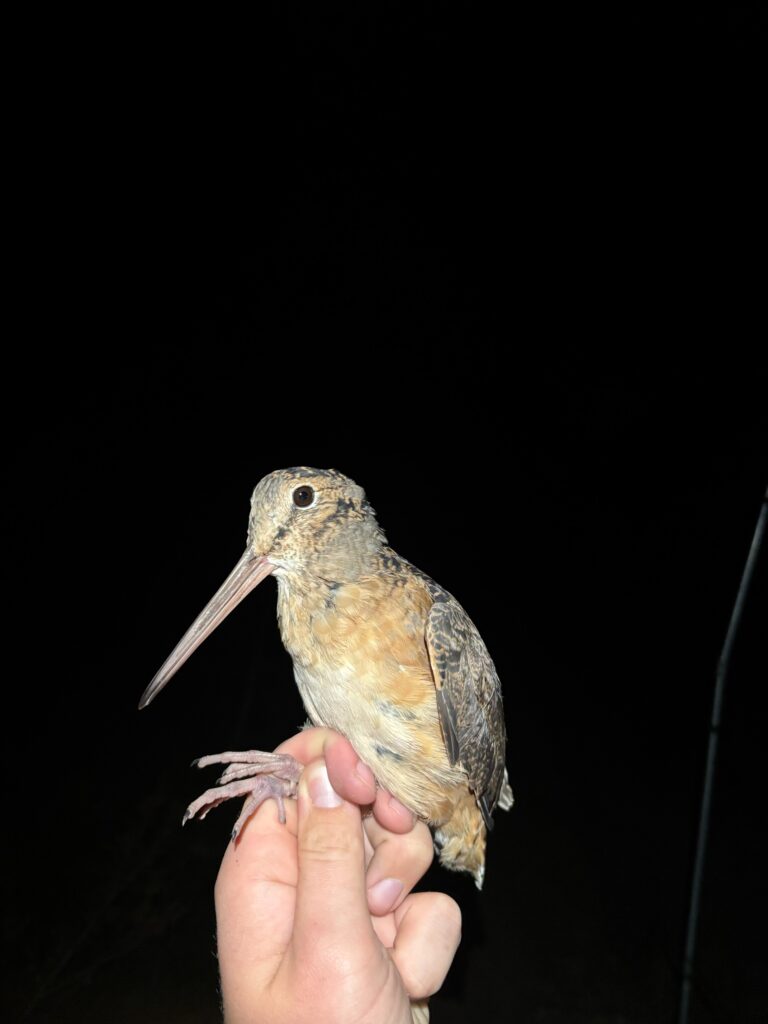 Two non-owl species caught this week include the American woodcock (AMWO) and white-throated sparrow (WTSP). Despite being a widely-studied denizen of upland and young forest habitats, the AMWO is actually a shorebird and taxonomically placed in the sandpiper family. They are well known for their elaborate courtship displays and using their long, prehensile bills to probe the ground for earthworms and other invertebrates. The WTSP is a familiar songbird across much of North America known for their facial markings and whistling calls.