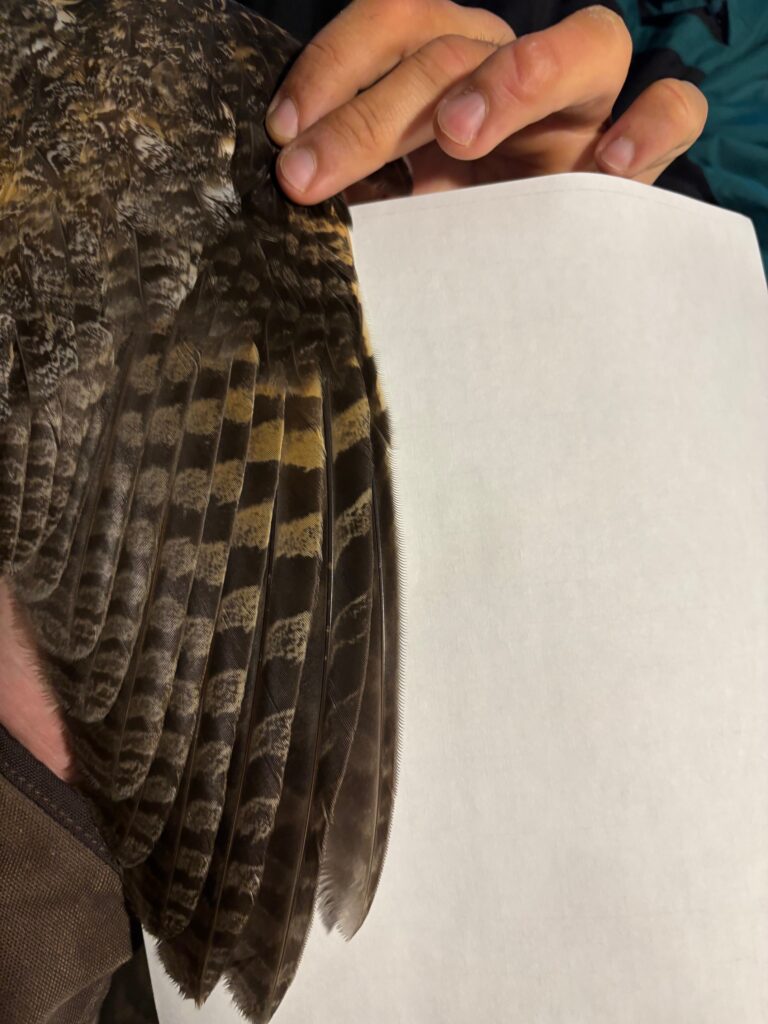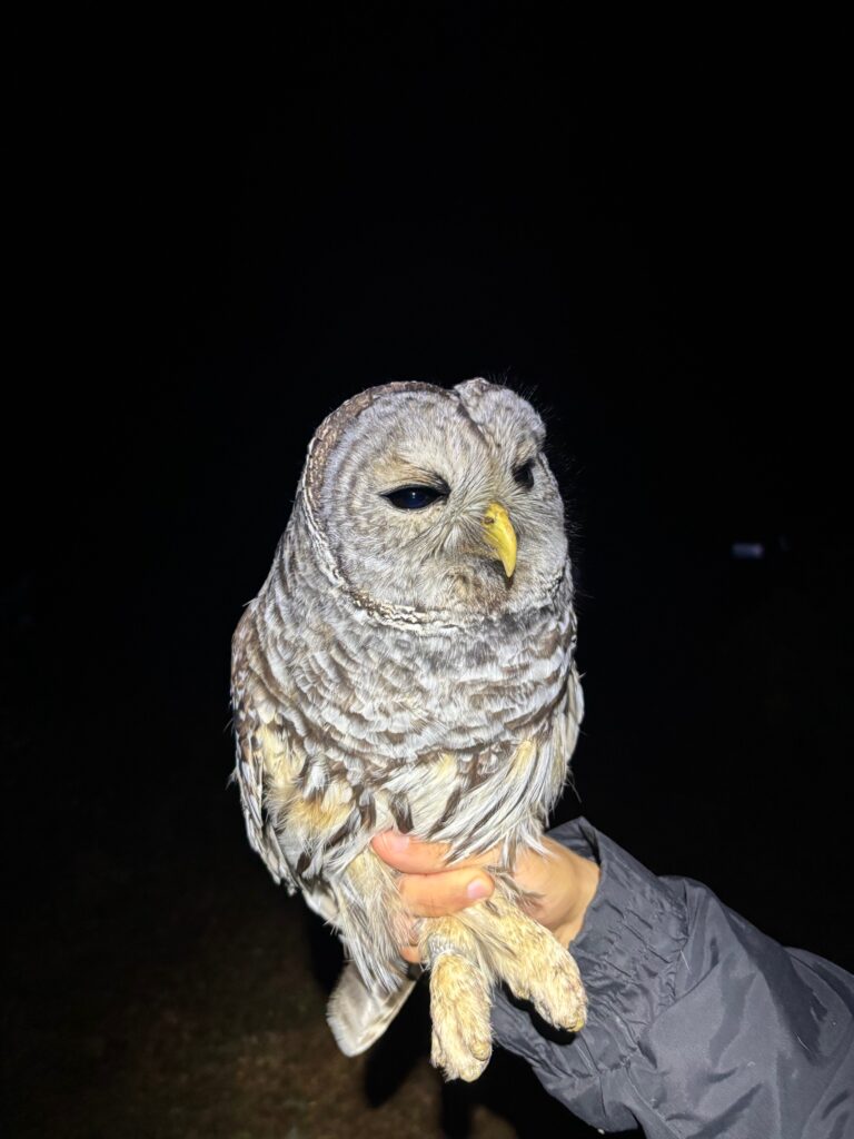 An unexpected surprise this week was the appearance of not just one, but two barred owls (BDOWs) together at one of our net sites in the early morning on October 25th! We successfully captured one but the other unfortunately escaped. Another individual was captured earlier on the 22nd. We also captured another female long-eared owl (LEOW) during dawn on the 22nd at our last net check. Banding her under more light allowed for a much appreciated look at the details of her plumage.