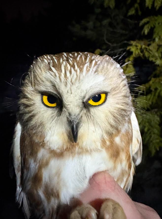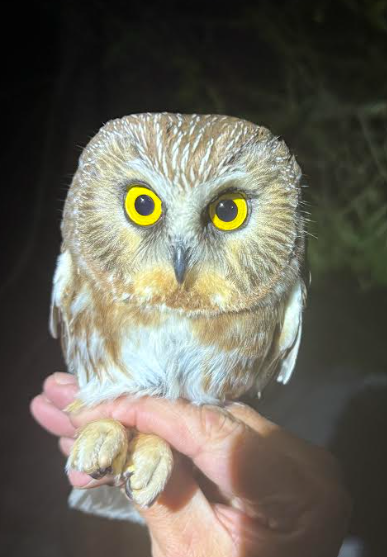 Our first official night of trapping was on March 20th. We were not expecting much with all of the inclement weather, but to our delight, we caught four Northern saw-whet owls (NSWO)! Since night one, we have been able to open nets every night, but three nights required early closing to due snow and rain. Our current total sits at 27 NSWO banded this season and 3 foreign recaptures from other banding sites. Keep your fingers crossed for better weather conditions as we head into our next week!