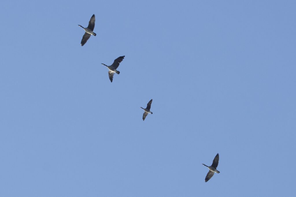 A single Cackling Goose (1) was spotted from Graham Point on 04/18 within a line of migrating Canada Geese. Cackling Geese are “miniaturized” versions of Canada Goose that appear remarkably small in flight.