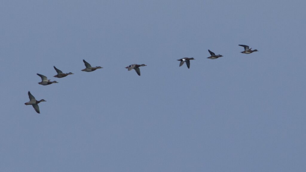 Five Mallard and three American Wigeon (front) – McGulpin Point 09/24/2025