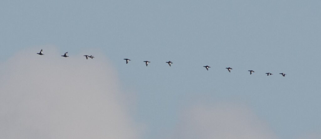 Diving ducks are late fall migrants. Numbers have steadily increased from the end of September. Flights of diving ducks are still dominated by Redhead (5,580), including a strong push of 3,980 on October 14th. Small flocks of Greater Scaup (137) are now sighted regularly. The first triple digit count of 104 was recorded on October 14th.